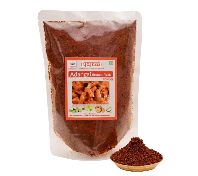 4. Prepare instant pickle by adding required quantity of Yajna’s Adangai Powder